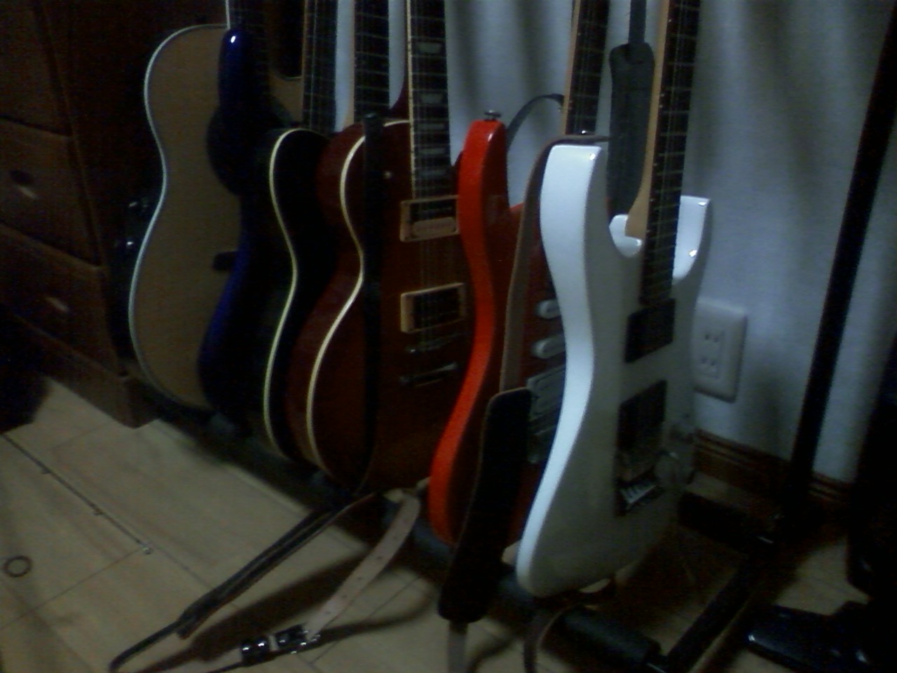 ギターたち。手前の赤いのは向井のですが、向井はギター弾けません